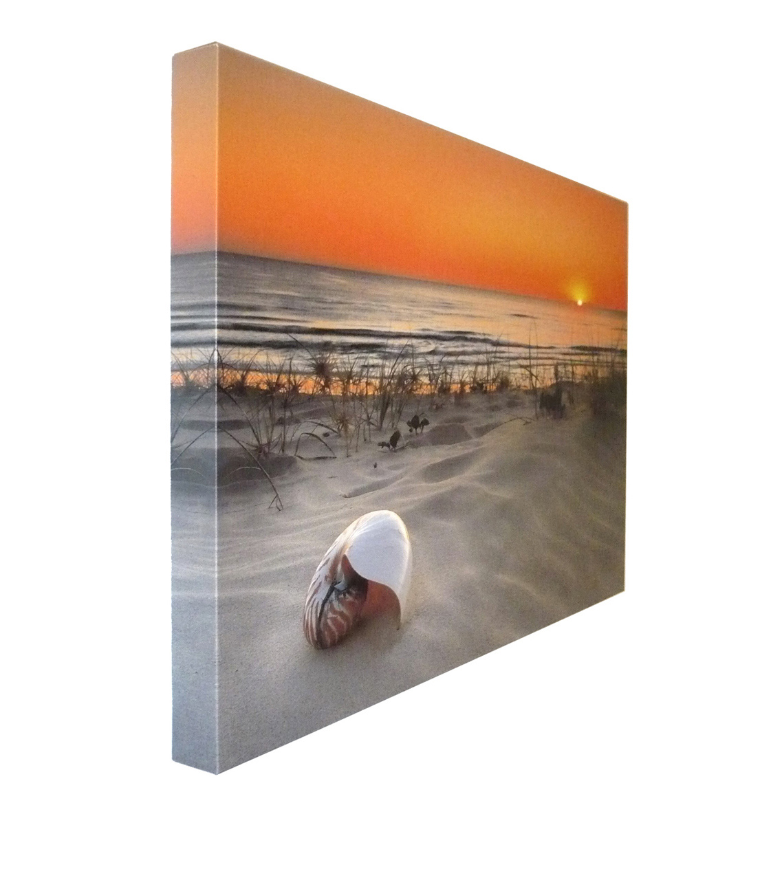 Paper and canvas prints are unframed. All canvas prints will be printed with a gallery wrap. If you want it stretched you can have it stretched over an internal frame by a framer. If you choose to frame the canvas with a conventional frame the gallery wrap can be cut off by the framer and then framed using any frame of your choice. In canvas printing, the term “gallery wrap” refers to an image that appears on the sides of a canvas print as well as the front. The image on the sides is a reflection of the main image. Because the sides are mirrored, the entire image is visible on the front of the canvas.